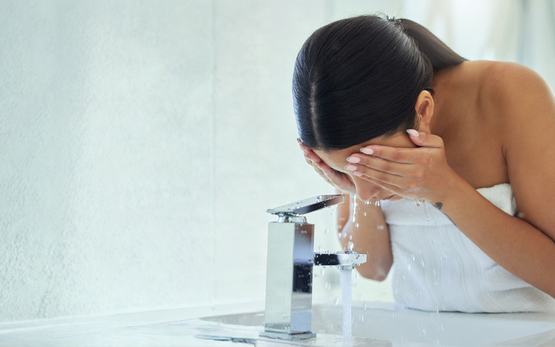 ابدئي يومك بغسول خفيف خالٍ من العطور والكحول. تجنبي الصابون التجاري أو الغسولات القاسية لأنها تزيل الزيوت الطبيعية وتفتح بابًا واسعًا للجفاف.