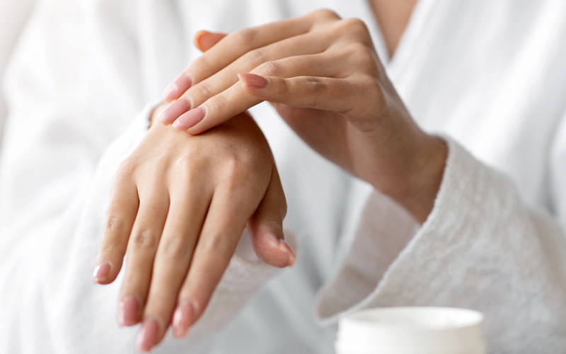 أما اليدان، فهما أول ما يواجه الهواء البارد. احملي دائماً كريم ترطيب خفيف للنهار، وآخر أكثر كثافة للّيل. وتذكري أن ارتداء القفازات في الخارج يحميكِ من فقدان الرطوبة.