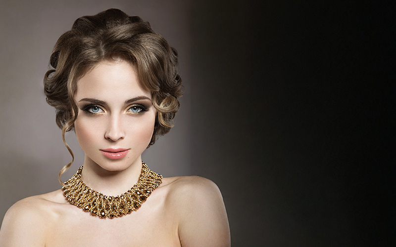 بينما تُفضَّل القلادات القصيرة ذات التصميم المستدير لصاحبات الوجوه النحيلة والطويلة.